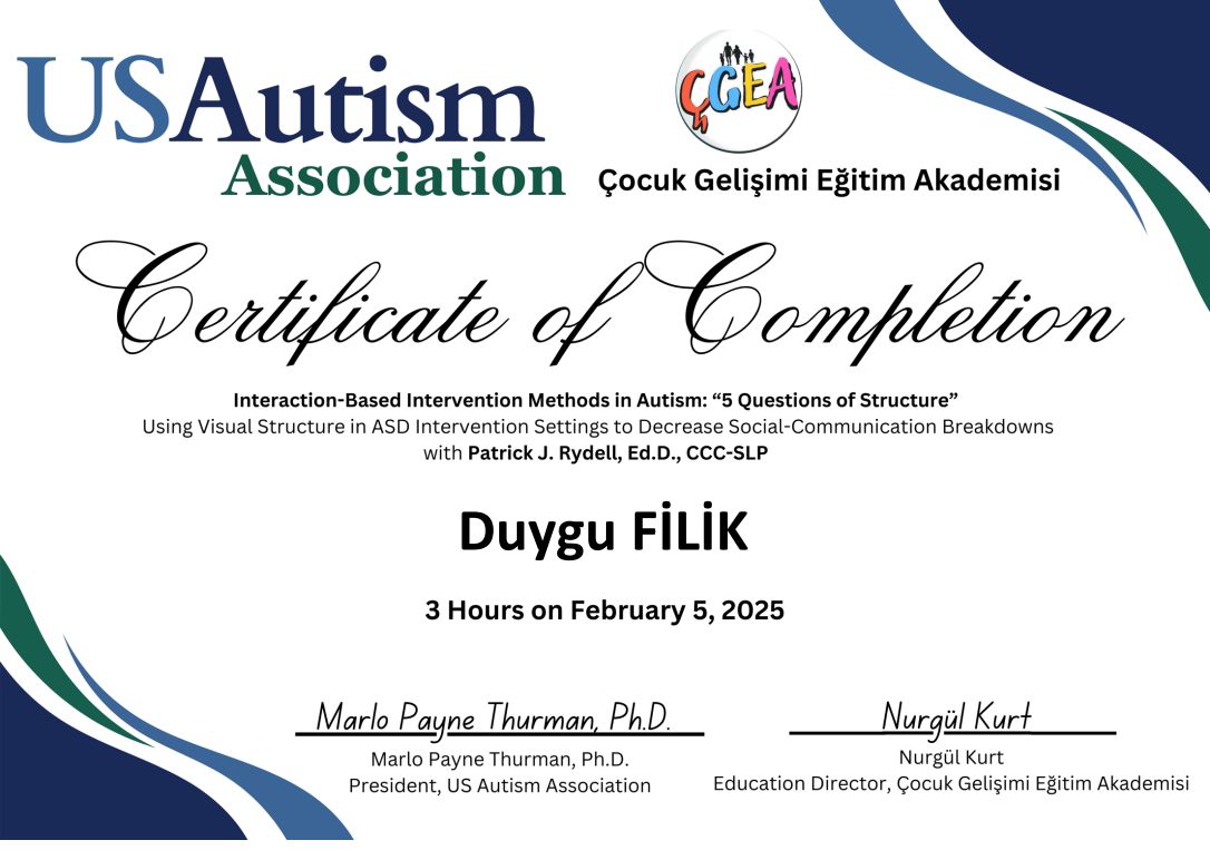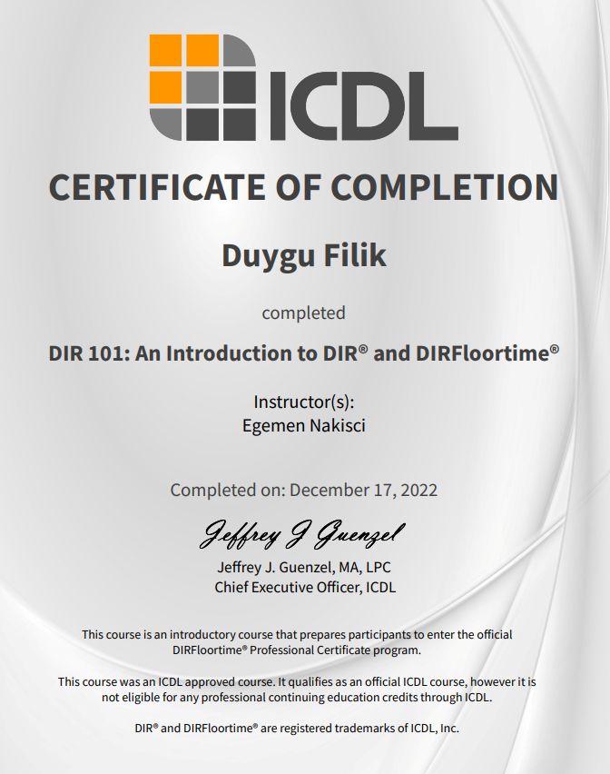 Mesleki gelişimine verdiği önem doğrultusunda İstanbul Üniversitesi Çocuk Gelişimi ve Eğitimi bölümünde akademik eğitimine devam etmektedir. Güncel olarak Sağlık Meslek Hizmet Birimi bünyesinde görev yapan Dkt. Duygu Filik, danışanlarına bilimsel temelli, bütüncül ve kişiye özel terapi yaklaşımlarıyla hizmet vermeyi sürdürmektedir.