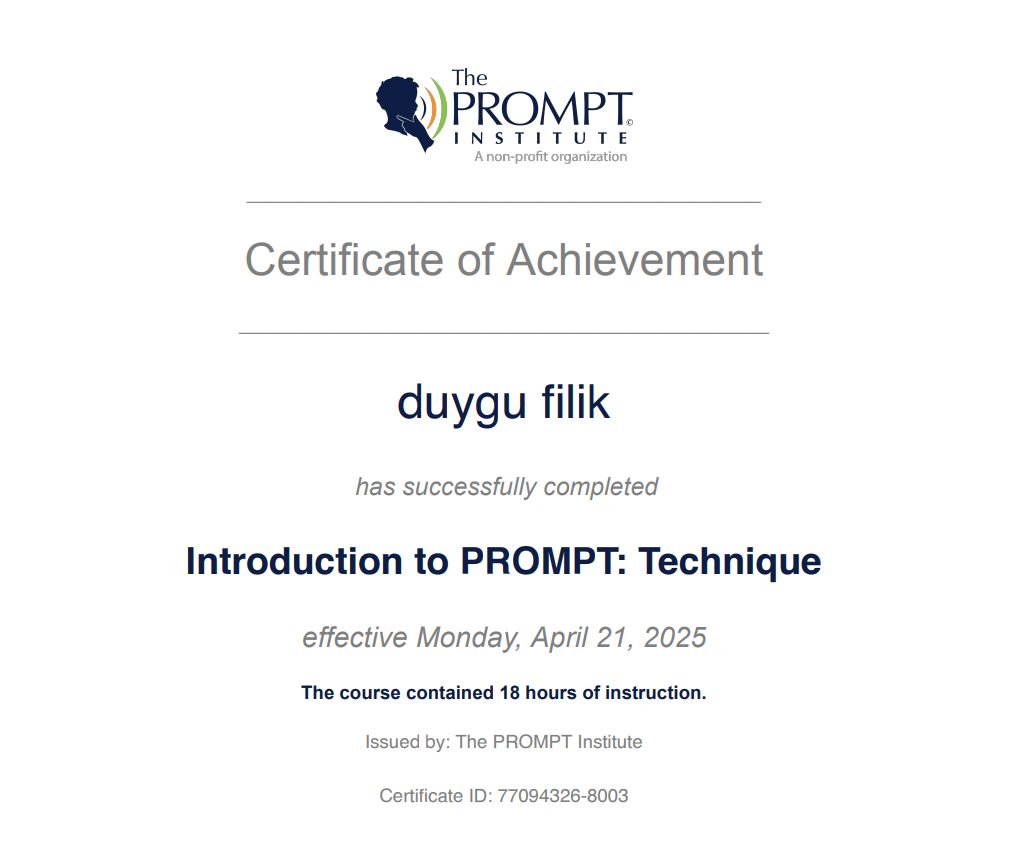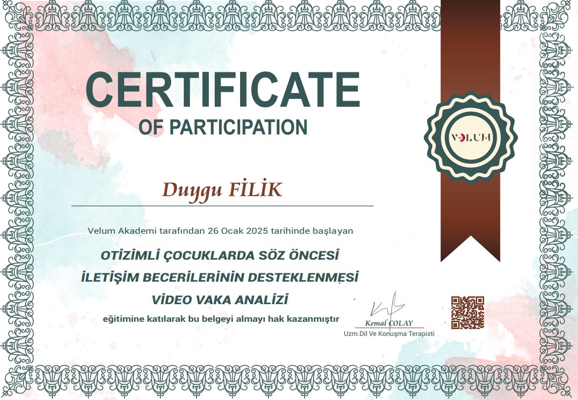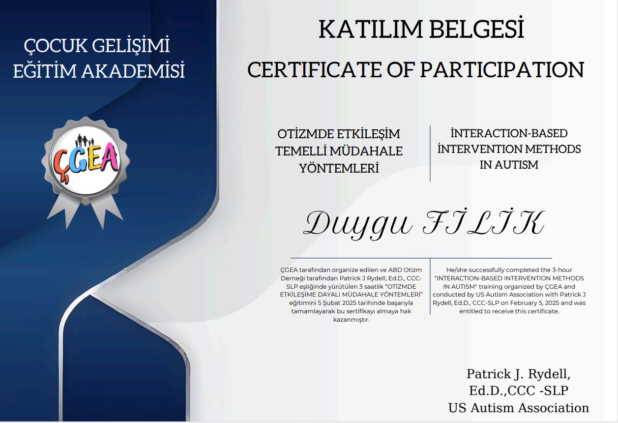 Dil ve Konuşma Terapisti Duygu Filik, lisans eğitimini Medipol Üniversitesi Sağlık Bilimleri Fakültesi Dil ve Konuşma Terapisi bölümünde Yüksek Onur derecesiyle tamamlamıştır. Eğitim süreci boyunca çeşitli hastanelerde, rehabilitasyon merkezlerinde ve özel kliniklerde kapsamlı staj deneyimleri edinmiş; farklı vaka profilleriyle çalışma fırsatı bularak klinik becerilerini güçlendirmiştir.